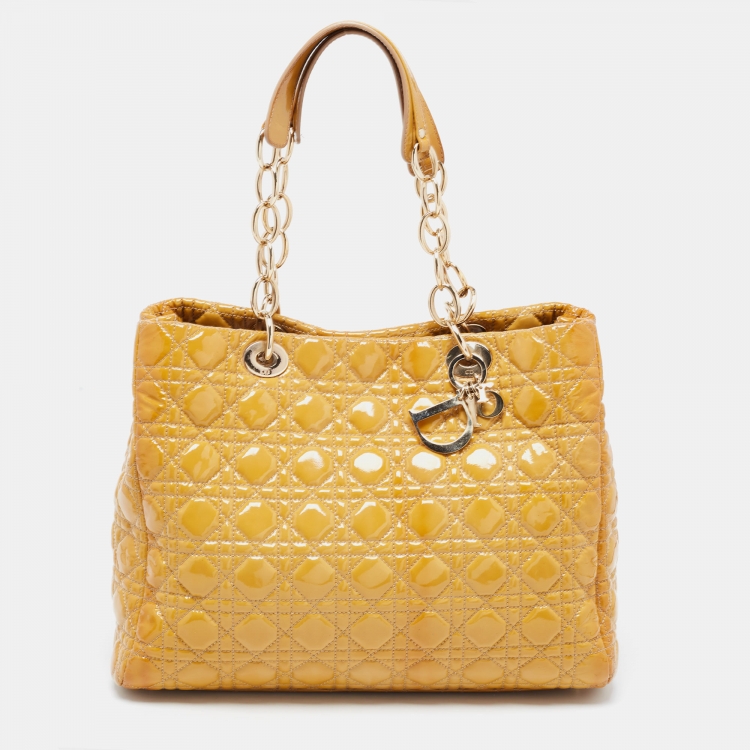 Dior Yellow Cannage Patent Leather Large Soft Lady Dior Shopping Tote