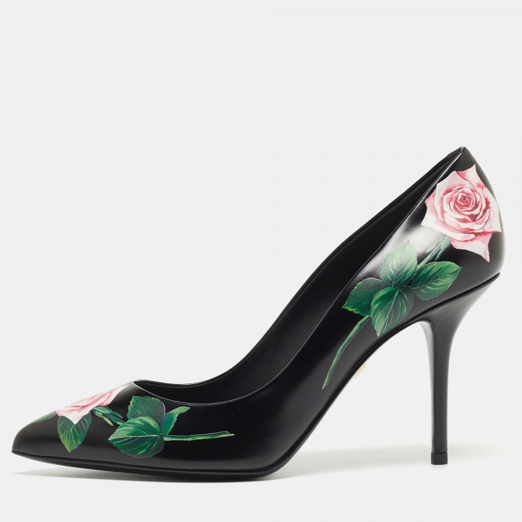 Pre Owned Dolce & Gabbana Black Leather Floral Print Pumps Size 40