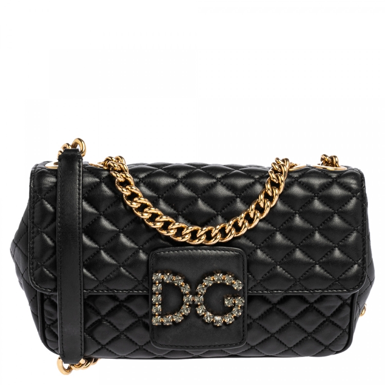 Pre Owned حقيبة كتف دولتشي أند غابانا ميلينيالز جلد مبطن أسود مزينة شعار الماركة دي جي