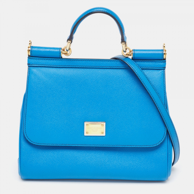 حقيبة دولتشي أند غابانا ميس سيسيلي جلد أزرق متوسطة بيد علوية