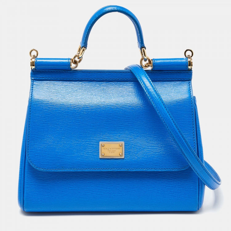 حقيبة دولتشي أند غابانا ميس سيسيلي جلد أزرق متوسطة بيد علوية