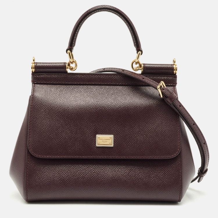 حقيبة دولتشي أند غابانا يد علوية ميس سيسيلي صغيرة جلد بورجوندي