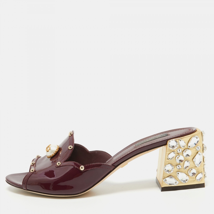 Pre Owned Dolce & Gabbana Burgundy Patent Leather Crystal Embellished Slide Sandals Size 41