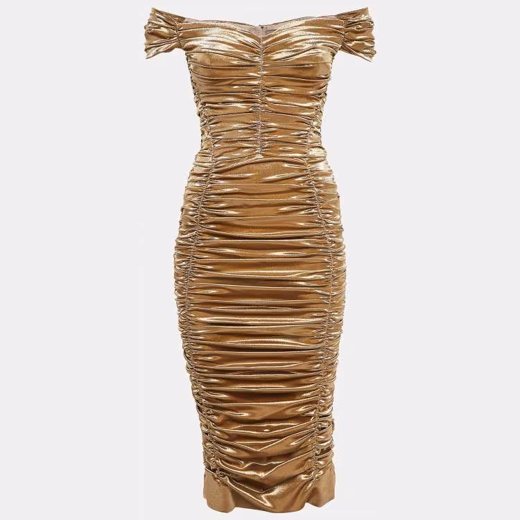 فساتين أوف شولدر دولتشي أند غابانا روشي لاميه ذهبية معدنية مقاس متوسط