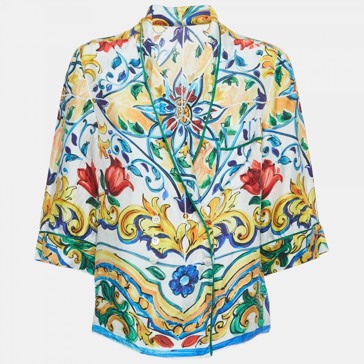 Dolce & Gabbana Multicolor Majolica Print Silk Double Breasted Blouse S