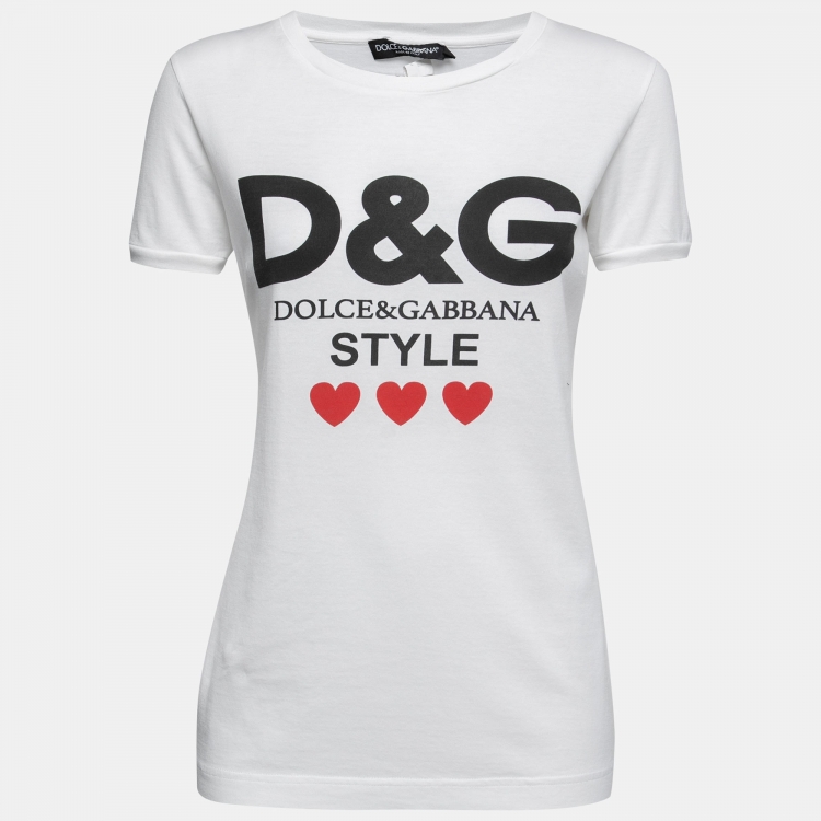 مملوكة مسبقًا Dolce & Gabbana White Cotton Logo & Heart Print T-Shirt S