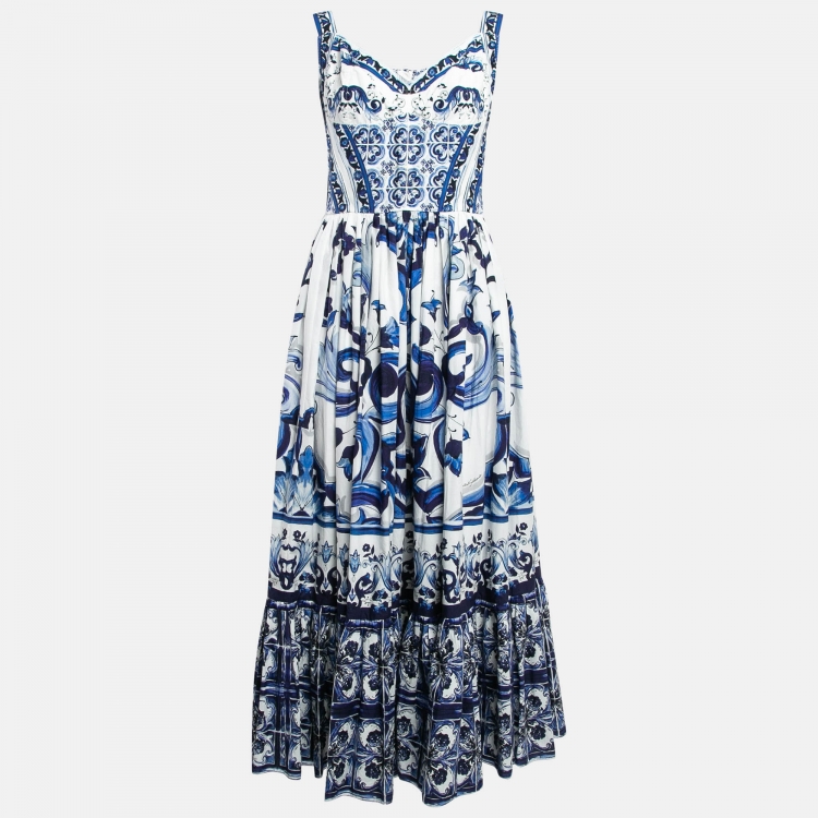 Dolce & Gabbana White Printed Cotton Sleeveless Midi Dress L