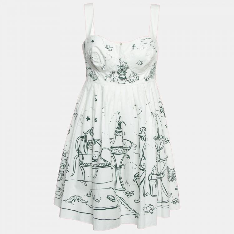 Dolce & Gabbana White/Green Printed Cotton Mini Dress L