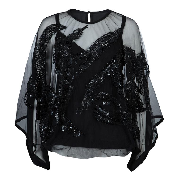مملوكة مسبقًا توب أيلي صعب شبك مزخرف بترتر أسود M
