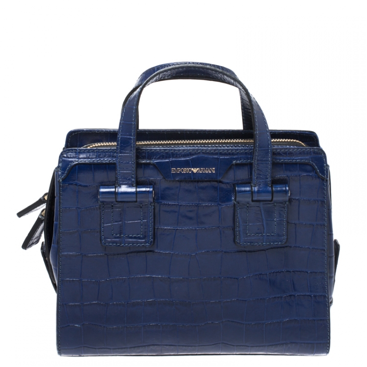 مملوكة مسبقًا حقيبة كتف أمبوريو أرماانيي جلد نقشة التمساح أزرق