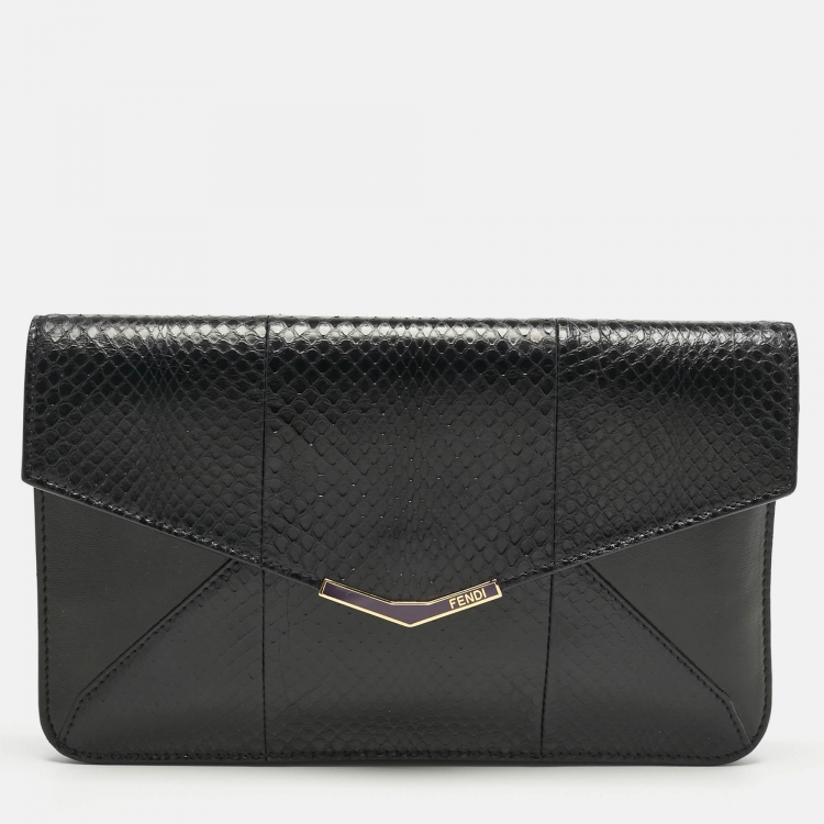 Pre Owned حقيبة كلتش فندي جلد أسود وجلد ثعبان 2 جورس ظرف