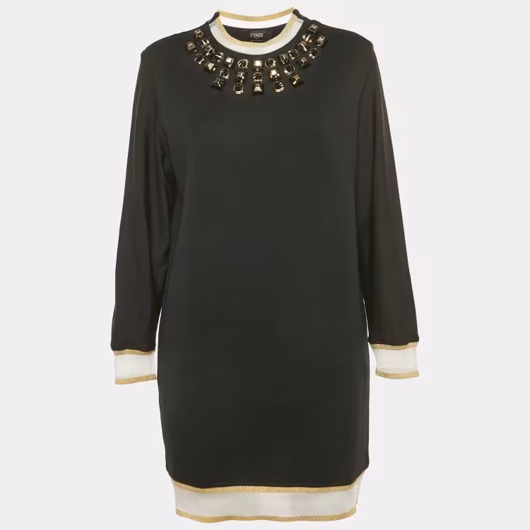 مملوكة مسبقًا فستان صغير كريب أزرق فندي مقاس كبير - لارج