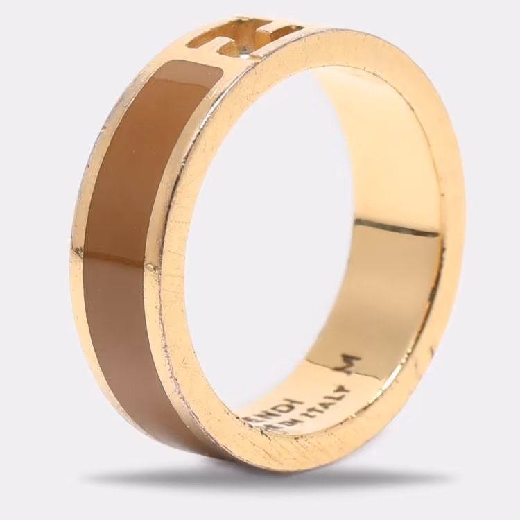 Pre Owned خاتم فندي ذا فنديستا حلقة معدن ذهبي اللون وإينامل لونين مقاس 54