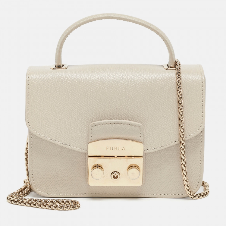Furla Light Beige Leather Mini Metropolis Top Handle Bag