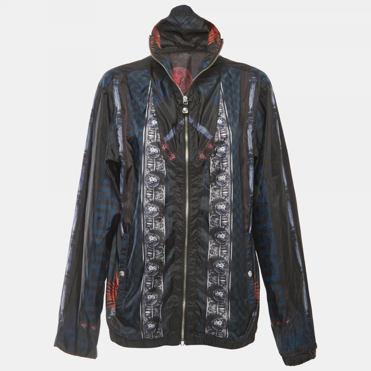 Versus Versace Black All-Over Print Synthetic Zip Front Jacket XL