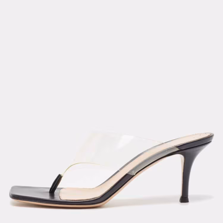مملوكة مسبقًا صندل جيانفيتو روسى شبشب سير من الجلد والـ PVC أسود مقاس 38.5