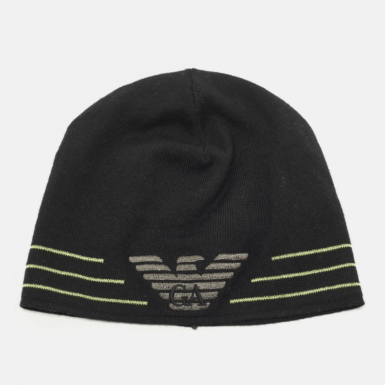 Pre Owned قبعة جورجيو أرماني صوف سوداء بشعار مطرز صغيرة
