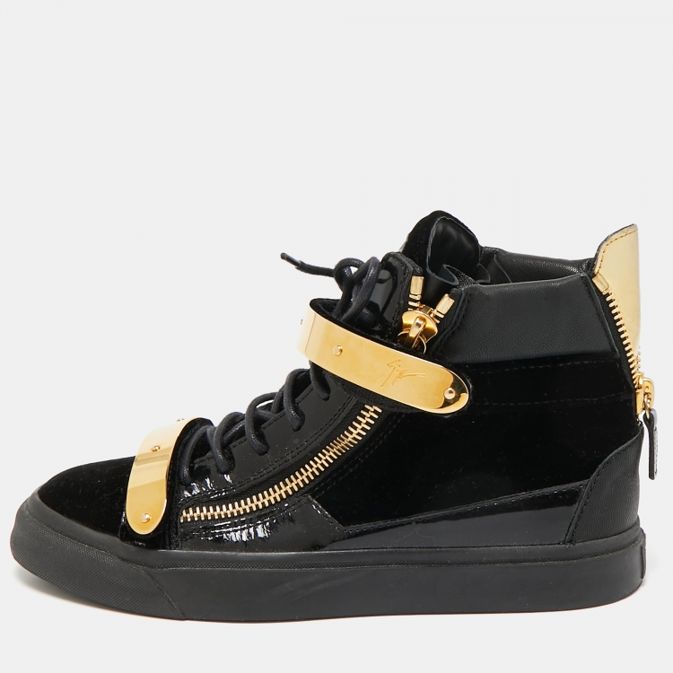 حذاء رياضي جوسيبي زانوتي مرتفع من أعلى كوبي جلد لامع وقطيفة أسود مقاس 39