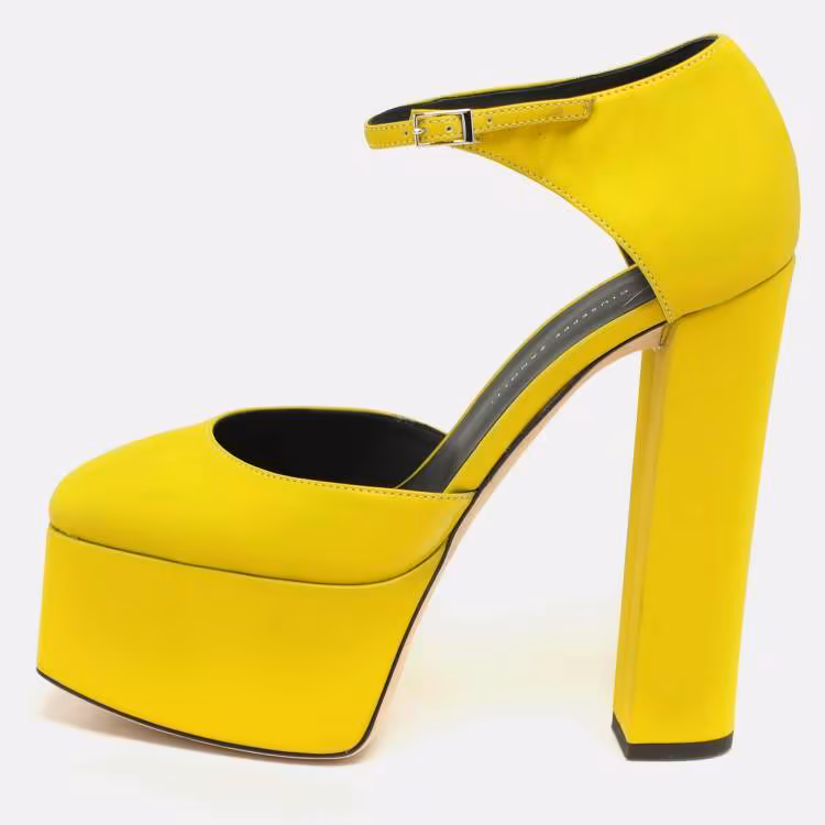 حذاء كعب عالي جوسيبي زانوتي جلد أصفر لامع نعل سميك مع حزام عند الكاحل مقاس 39