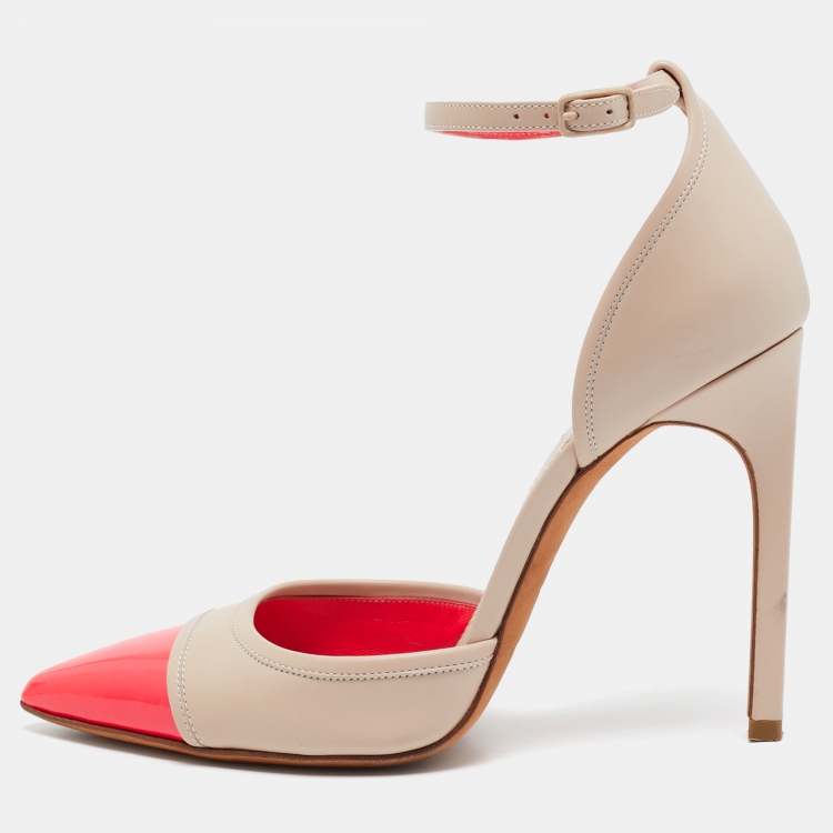 Pre Owned حذاء كعب عالي جيفنشي جلد بيج/وردي لامع سير كاحل مقاس 37.5