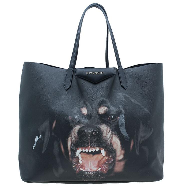 حقيبة جيفنشي شوبر كانفاس أسود مقوى طباعة كلب كبيرة