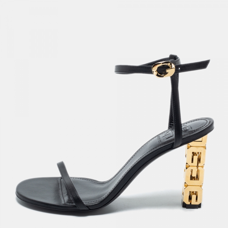 Givenchy Black Leather G Cube Heel Ankle Strap Sandals Size 39