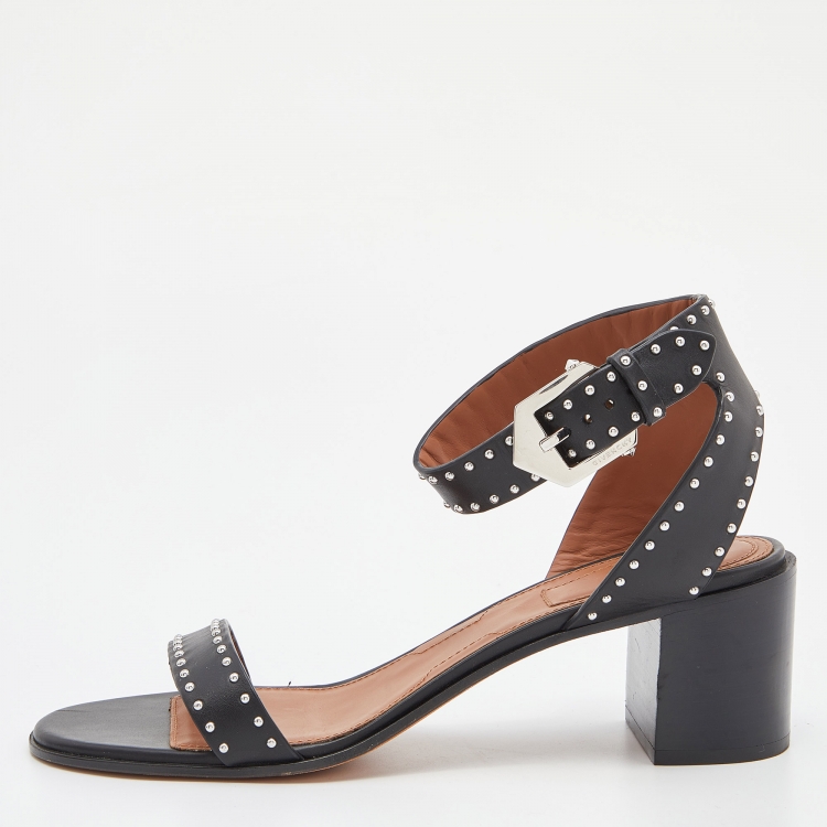 مملوكة مسبقًا صندل جيفنشي مقدمة مفتوحة سلسلة كاحل جلد أسود مقاس 39