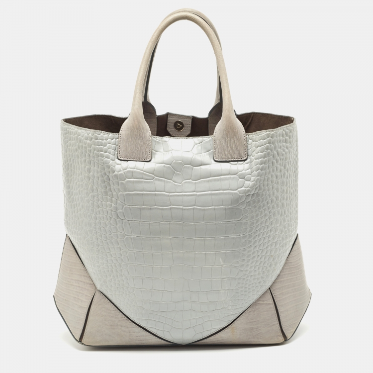 Givenchy Two Tone Grey Croc Embossed Leather Easy Tote