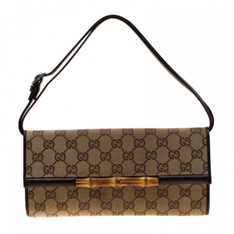 Pre Owned حقيبة غوتشي بامبو كانفاس GG عاجية/ بيج