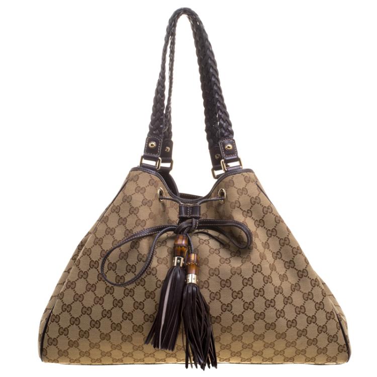 Pre Owned حقيبة غوتشي بريغي كانفاس GG بيج بيد بامبو مجدولة