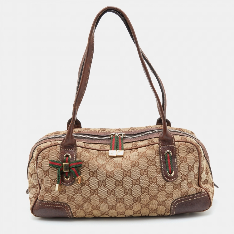 Gucci Beige/Brown GG Canvas and Leather Princy Boston Bag