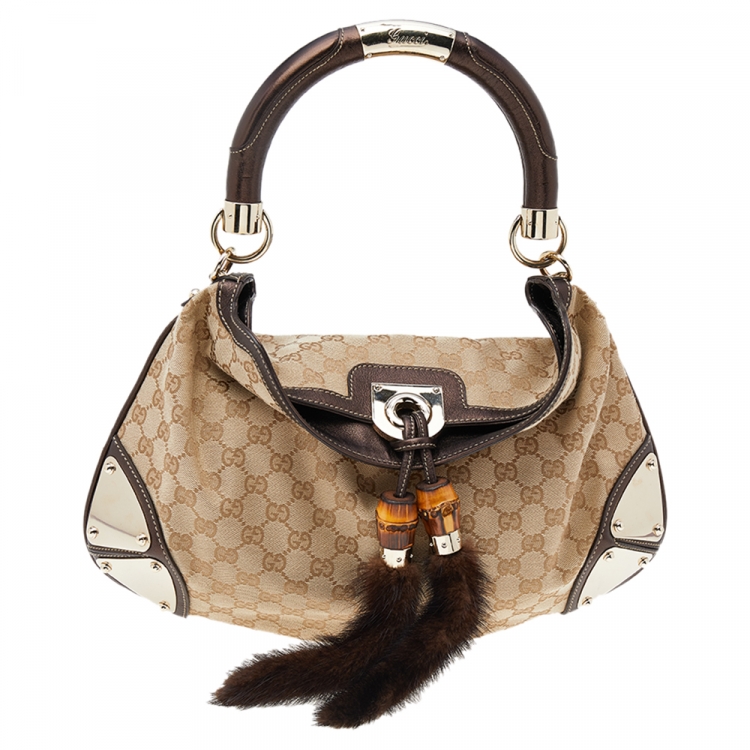Pre Owned حقيبة هوبو غوتشي "مينك إيندي" صغيرة جلد و كانفاس جي جي بيج و بني ميتاليك