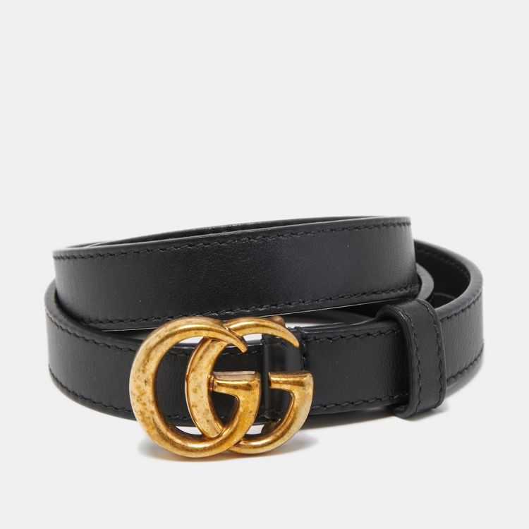 Gucci Black Leather GG Marmont Buckle Slim Belt 85CM