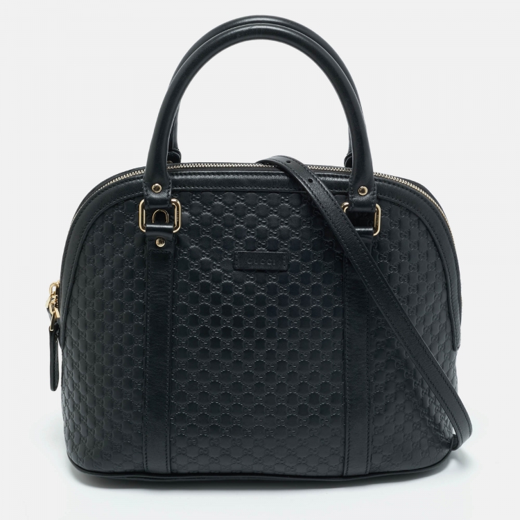 مملوكة مسبقًا حقيبة ساتشل قبة جميلة جلد ميكروغوتشيسما سوداء غوتشي