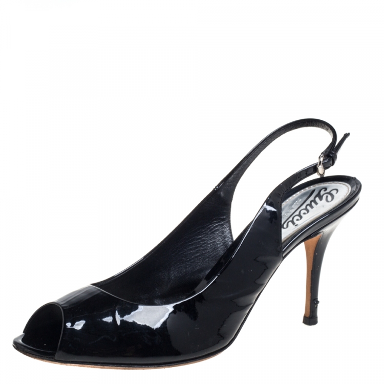 Pre Owned صندل غوتشي جلد أسود لامع مفتوح مقاس 39