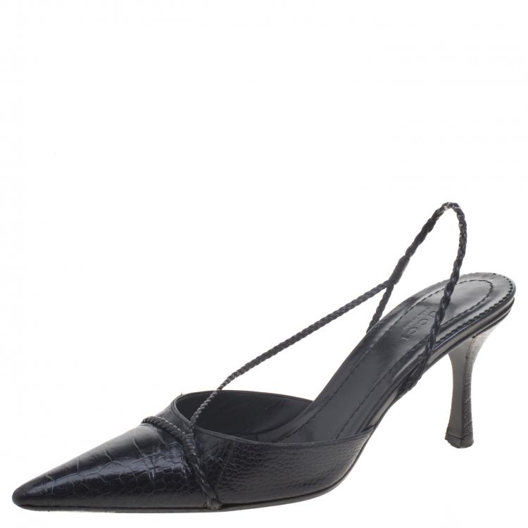 مملوكة مسبقًا صندل غوتشي جلد أسود نقشة الثعبان مفتوح ومغزول مقاس 37