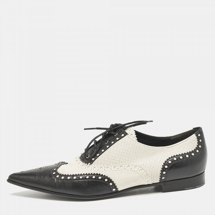 Gucci Black/White Brogue Leather Pointed Toe Oxfords Size 40