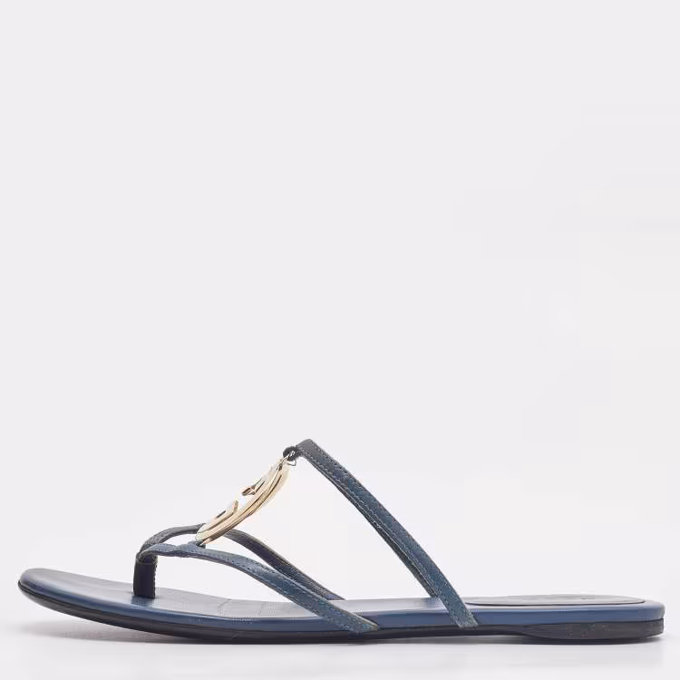 مملوكة مسبقًا صندل غوتشي فلات جي جي بلو جلد مقاس 37