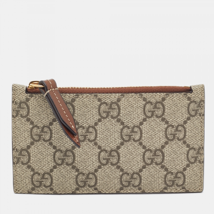 Gucci Brown/Beige GG Supreme Canvas and Leather Zip Card Holder