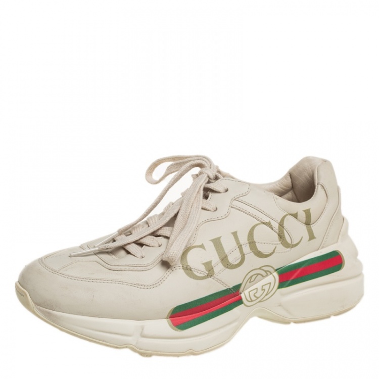 حذاء رياضي غوتشي ريتون رباط علوي جلد كريمي مقاس 38