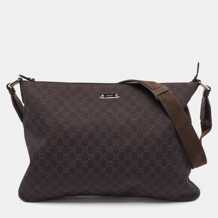 Pre Owned Gucci Dark Brown GG Denim Zip Messenger Bag