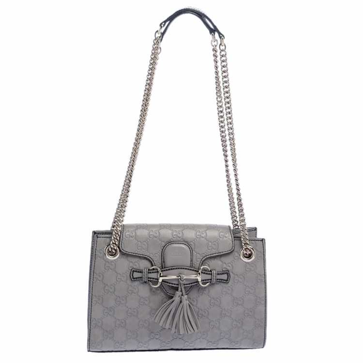 حقيبة كتف غوتشي سلسلة ايميلي صغيرة جلد غوتشيسيما رمادية