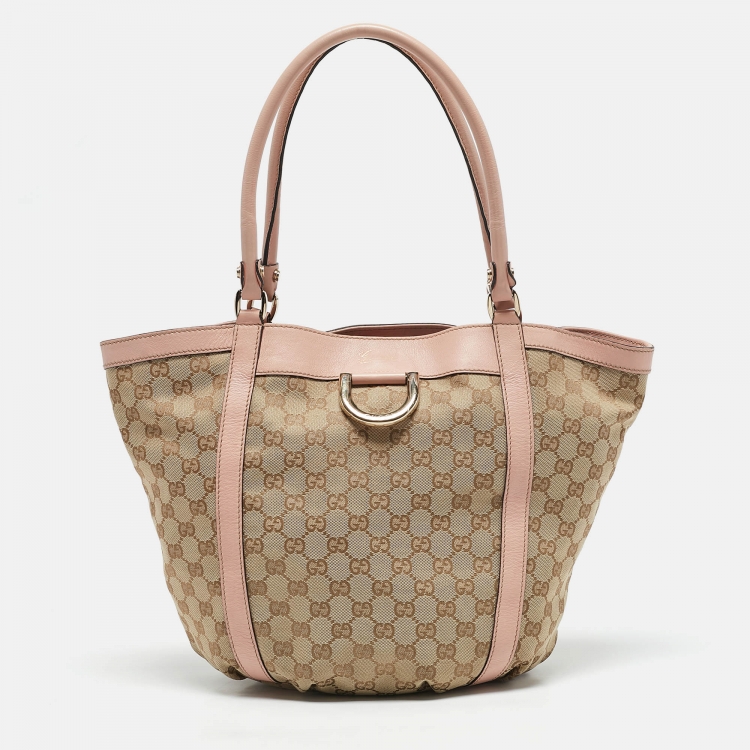 Gucci Light Pink/Beige GG Canvas and Leather D Ring Tote