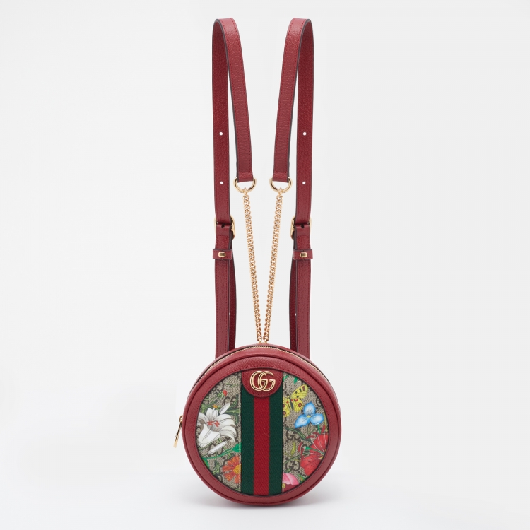 Pre Owned حقيبة ظهر غوتشي اوفيديا جلد وكانفاس جي جي سوبريم مورد أحمر/متعدد الألوان صغيرة