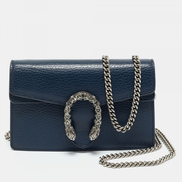 حقيبة كتف غوتشي ديونيسوس جلد كريستال سوبر صغيرة زرقاء كحلية