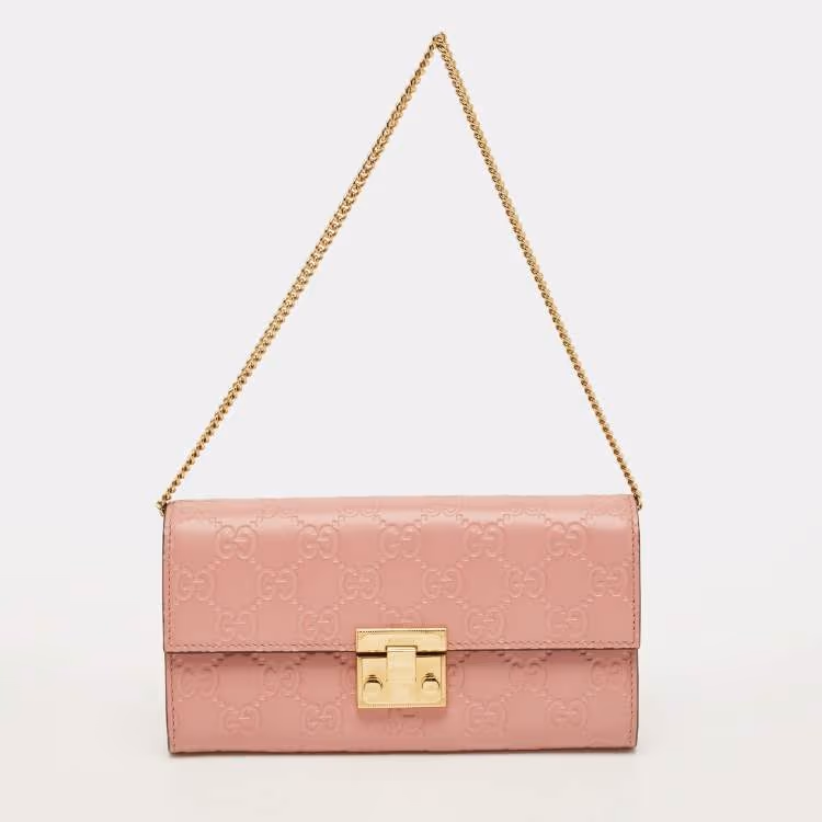 محفظة غوتشي قفل سلاسل قماشية جلد غوتشي أسود