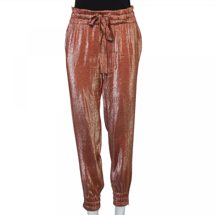 Pre Owned بنطلون رياضي غوتشي تفاصيل ربطة خصر لاميه بني نحاسي مقاس صغير