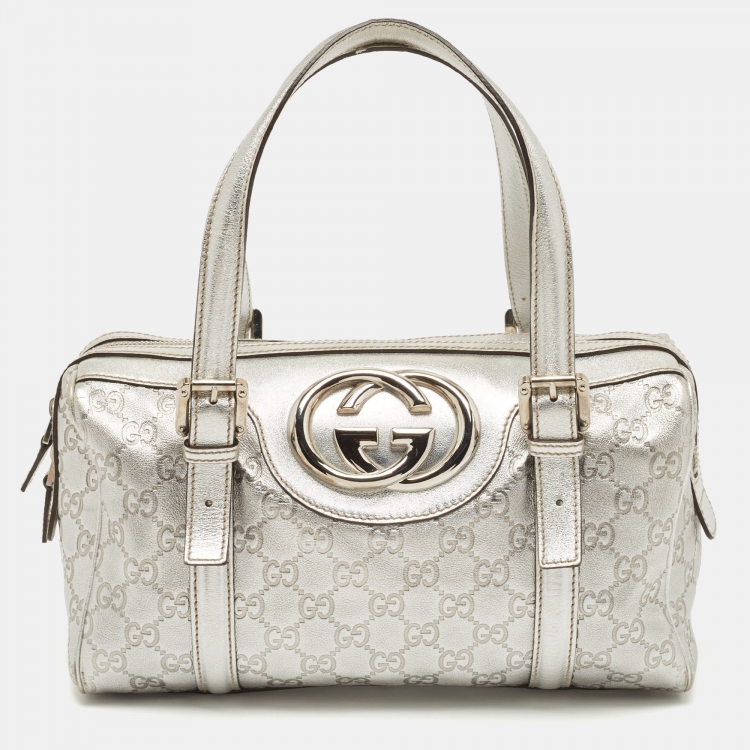 مملوكة مسبقًا Gucci Silver Guccissima Leather Britt Boston Bag