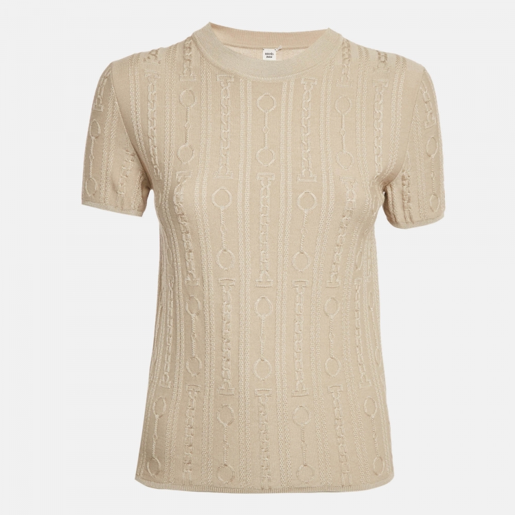 Hermès Beige Wool Blend Short Sleeve Kaleidoscope Effect Sweater M