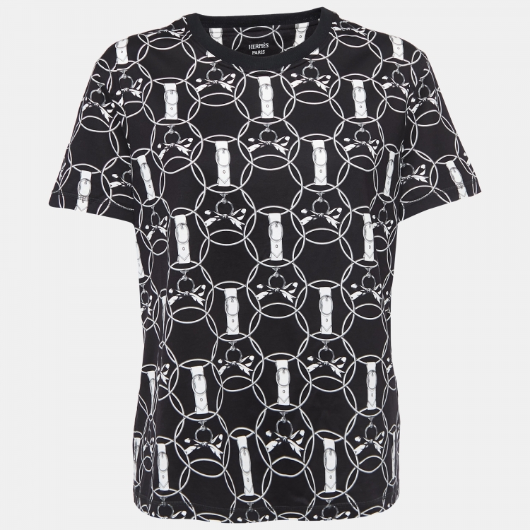 Pre Owned Hermès  Black Promenade du Matin Cotton Crew Neck T-Shirt L